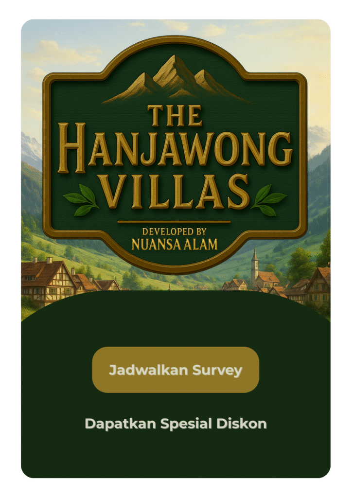 The Hanjawong Villas Developed By Nuansa Alam adalah project kavling dengan konsep area pedesaan rustic eropa, yang khas akan rumput hijau dan jajaran pegunungan dan aliran sungai yang bersih, konsep pertama di dunia kavling tanah murah dekat jakarta berada di Bogor Timur dengan konsep berbeda