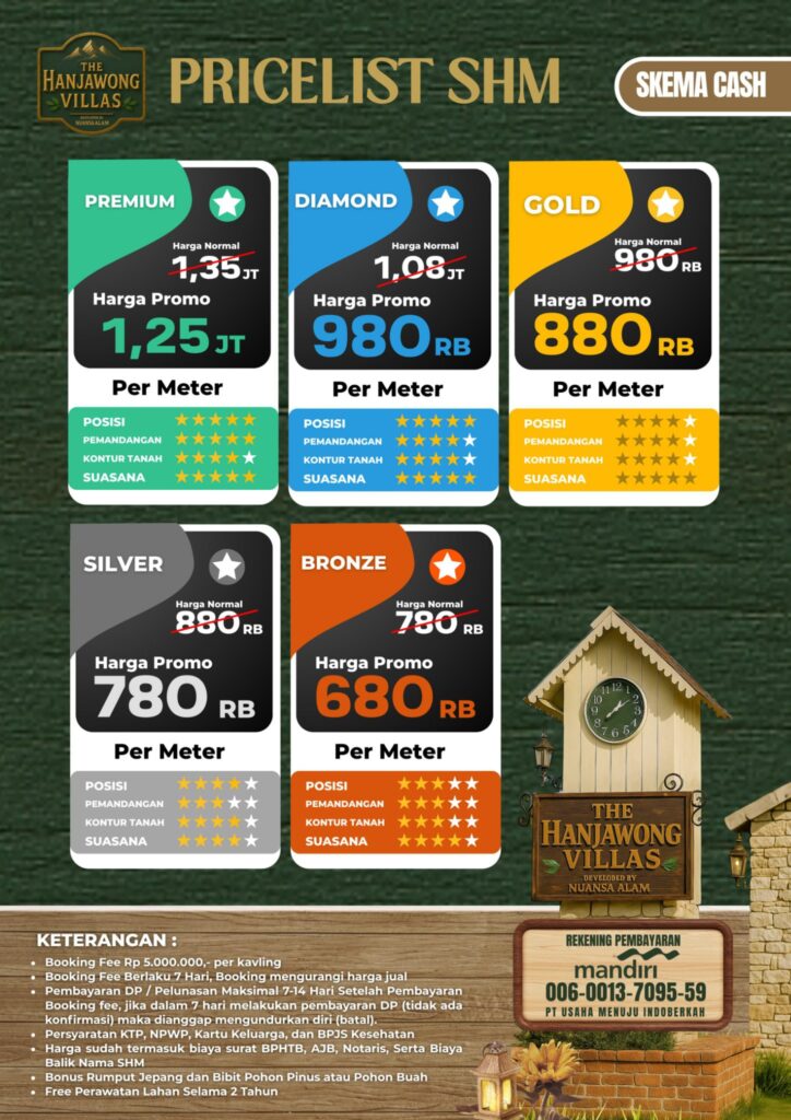 The Hanjawong Villas adalah pilihan tepat bagi Anda yang mencari kavling dengan suasana alam pegunungan yang asri, legalitas SHM, dan harga terjangkau. Berlokasi strategis di kawasan Puncak 2, kavling ini menawarkan view citylight dan perbukitan yang memukau. Cocok untuk hunian, villa pribadi, atau investasi jangka panjang. Didukung infrastruktur yang siap bangun dan konsep estetika bergaya villa Eropa klasik, The Hanjawong Villas jadi incaran para pencari ketenangan dan nilai properti tinggi.